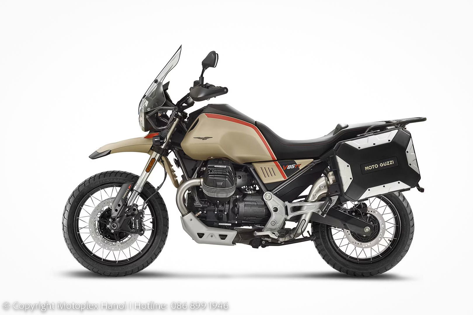 MOTO GUZZI V85 TT Travelchính thức được phân phối bởi Motoplex Hanoi - Đại lý Ủy Quyền duy nhất tại miền Bắc của Piaggio Việt Nam phân phối 4 thương hiệu xe: Vespa, Piaggio, Aprilia và Moto Guzzi. Tại Motoplex Hanoi, khách hàng có thể mua xe cũng như sử dụng dịch vụ Sửa chữa và Bảo hành, thay thế Phụ kiện chính hãng tại Xưởng Dịch Vụ Motoplex Hanoi