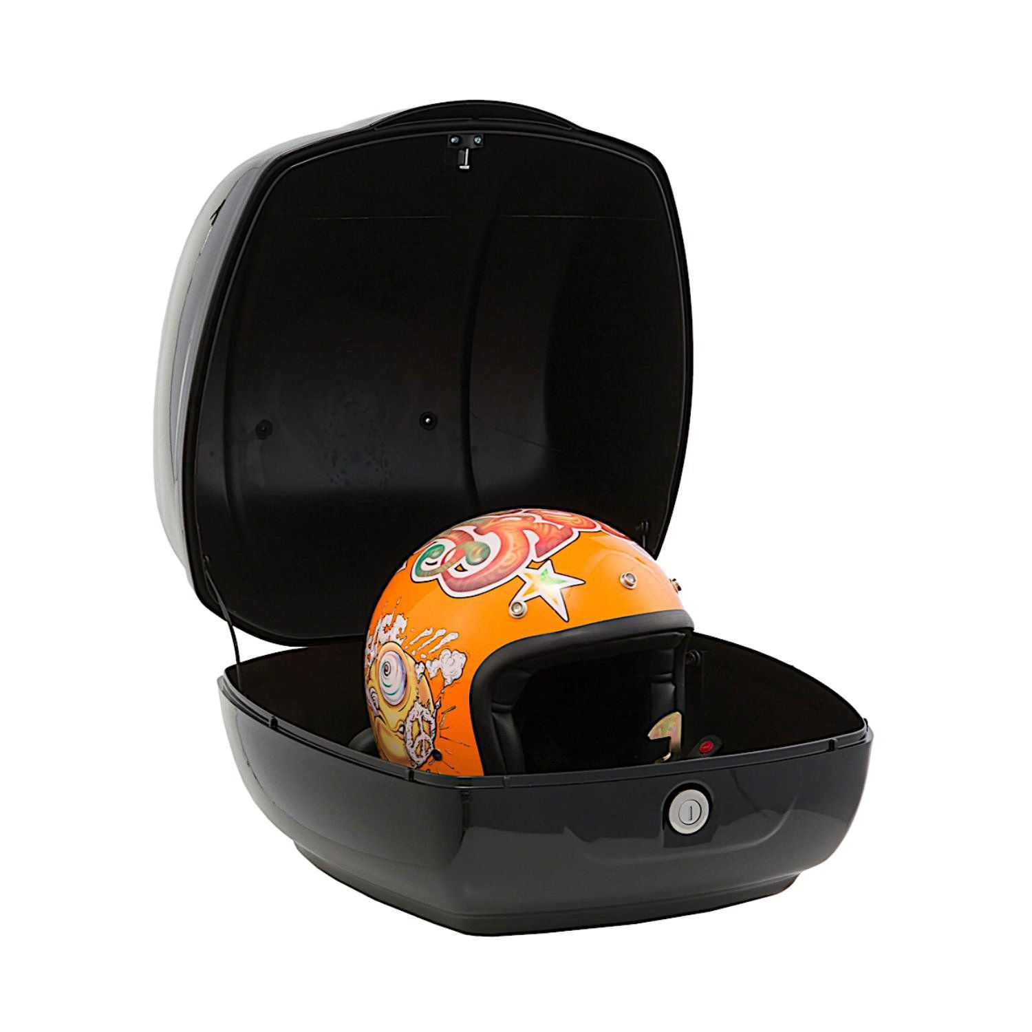- Không gian có thể đựng 02 mũ bảo hiểm thông thường hoặc 01 chiếc mũ bảo hiểm Fullface.
